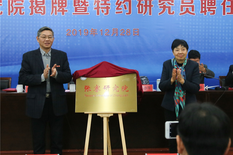 校党委书记浦玉忠与南通市委宣传部原部长、张謇研究中心干事会会长张小平共同为张謇研究院揭牌。