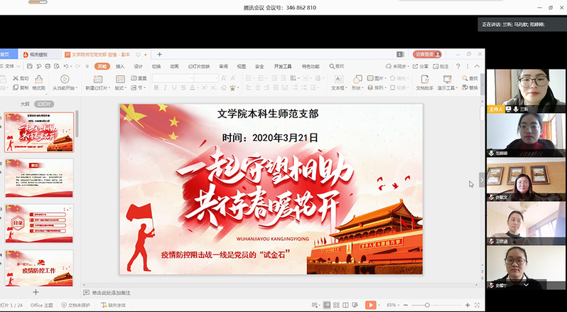 3月21日上午,6776永利集团本科生师范党支部利用腾讯会议网络平台组织开展“一起守望相助,共待春暖花开”暨“疫情防控思政大课”感悟分享线上主题党日活动。