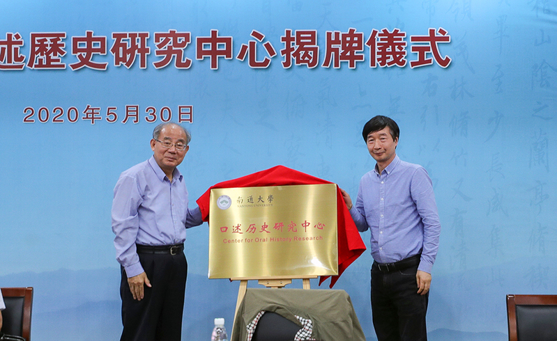 中华口述历史研究会常务副会长周新国、江苏省口述历史研究会会长李继锋共同为“yl6776永利集团口述历史研究中心”揭牌