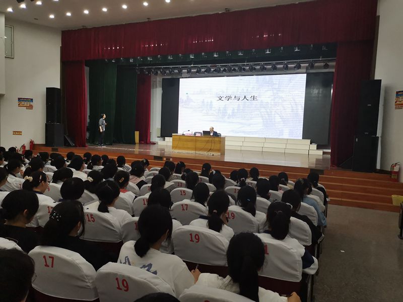 5月11日下午,6776永利集团百家讲坛系列讲座走进启东市汇龙中学。顾友泽教授应邀做“文学与人生”的主题讲座。讲座由汇龙中学副校长李圣华主持。6776永利集团副院长张学城,党委副书记、副院长王琦琦、学工办主任阚兴辉及汇龙中学300余名高一学生参加了讲座。