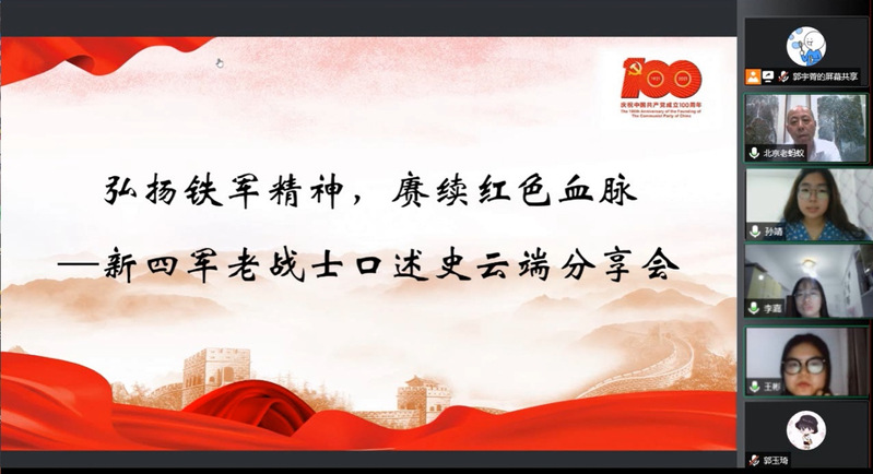 8月22日晚,yl6776永利集团“发扬红色传统,传承红色基因——南通地区红色资源调研团”齐聚“云端”,并邀请中华口述历史研究会常务理事、南京民间抗日战争博物馆副馆长薛刚,盐城新四军纪念馆馆员王金鑫,共同举办“弘扬铁军精神,赓续红色血脉——新四军老战士口述史云端分享会”。本次活动是调研团师生在前期寻访、收集、整理新四军老战士口述史基础上,共同交流、分享心得与收获。