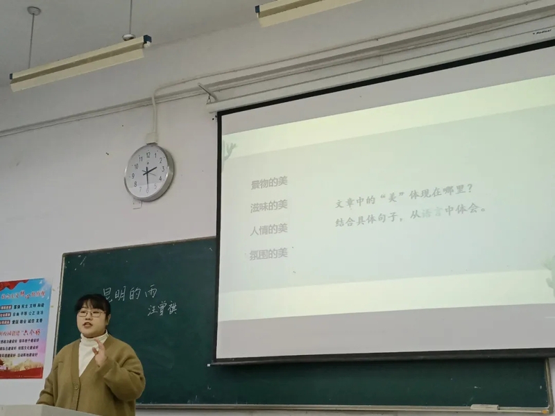 比赛从教态、教材处理、教学内容、教学创新、课件制作、板书设计等多方面对选手进行综合考核。选手们纷纷展现出自身的专业素养,亮点颇多。如吕武娟同学在《三峡》一文的授课中,以多样的教学技法和精炼生动的语言,突出三峡景色的壮美;刘嘉怡同学在《中国共产党的诞生》一文中,以条理清晰的板书梳理出中国共产党成立的条件等等。选手们的精彩表现频频获得评委老师的点头称赞。针对授课过程中出现多媒体闪退等突发事件,选手们也能够机智灵活地化解,赢得了观众们的热烈掌声。