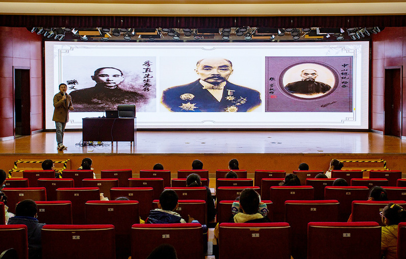 张若愚老师倾情主讲,为现场近200名江海小记者展现了一幅江海大地人文历史的恢宏画卷。张老师从近代实业家、教育家张謇开始讲起,继而缓缓道出南通近代的发展史。