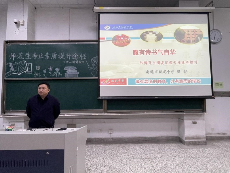 11月14日,6776永利集团师范生专业入门与专业伦理系列讲座开讲,全国优秀语文工作者、江苏省新长征突击手、江苏省优秀德育工作者、南通市学科带头人,现任南通市跃龙中学校长、党总支书记胡健应邀作题为“师范生专业素质提升途径”的首场报告。