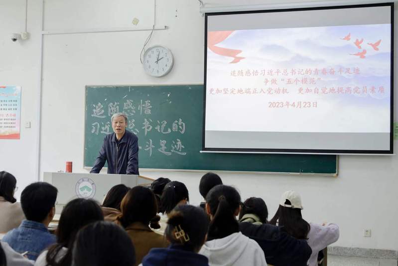 4月23日下午,6776永利集团分党校举办第五期党员发展对象暨预备党员培训班第三讲,校关工委副秘书长沈玉华受邀为学生党员做《追随感悟习近平总书记的青春奋斗足迹》专题讲座。