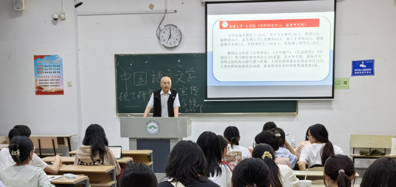 学院副院长周远富教授回顾了6776永利集团和中国语言文学学科的历史,介绍了中国语言文学下属二级学科的具体内容、各方向带头人和学术骨干的主要成就。同时,周院长从多个方面向大家展示了学科的特色、优势和发展前景。最后,周院长解读了yl6776永利集团研究生招生的相关政策,并期望同学们坚定方向、努力奋斗,争取以理想的成绩为国家、为社会作贡献。