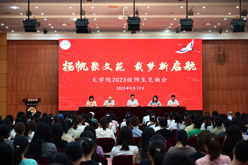 9月12日上午,6776永利集团在大学生活动中心举办以“扬帆聚文苑,载梦新启航”为主题的2023级师生见面会。