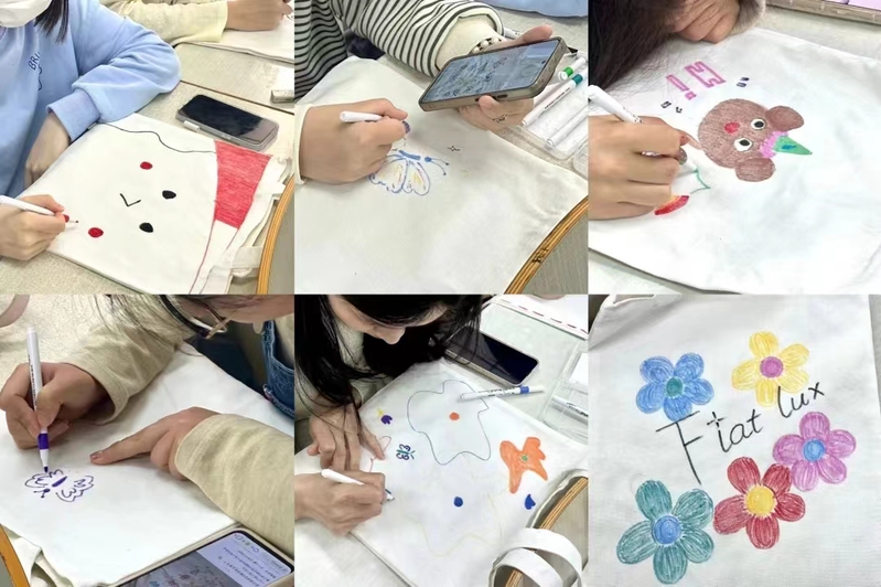 活动当天,同学们准时来到现场进行签到。在工作人员的引导下,同学们有序领取帆布袋与绘画工具。随后,主持人在详细介绍完活动的主要内容和基本要求后,同学们便投入到了紧张而充满创意的DIY大赛中。