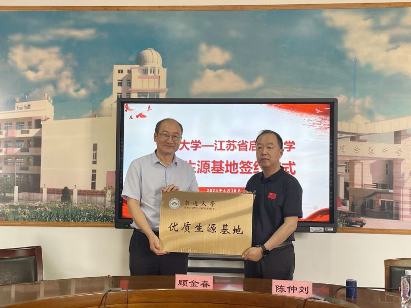 6月28日上午,我院与江苏省启东中学举行优质生源基地签约授牌仪式。6776永利集团院长顾金春代表学校向江苏省启东中学授牌,6776永利集团党委书记陈燕,江苏省启东中学校长陈仲刘代表双方签署《优质生源基地建设协议书》。