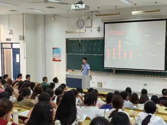 讲座上,民警生动形象的讲述了我校几起真实诈骗案例,详细阐述了“冒充熟人诈骗”“冒充公检法诈骗”“投资理财诈骗”“裸聊招嫖诈骗”等高发类电信诈骗的常见套路及特点,教给现场同学如何识别和防范电信网络诈骗,提醒师生增强防范电信诈骗意识,切勿盲目自信。民警表示当前国内诈骗案件高发、形势严峻且手法多变,让群众防不胜防,并运用条形图、柱状图等多种图例说明我校近年诈骗类警情众多,被骗金额庞大。