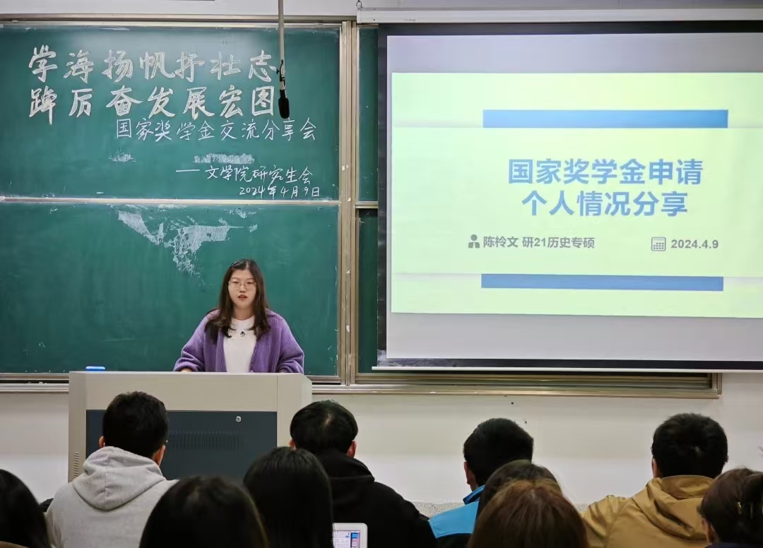 为强化学院优良学风建设,发挥优秀学生的带头作用,4月9日,由yl6776永利集团研究生会主办,6776永利集团研究生会承办的“学海扬帆抒壮志,踔厉奋发展宏图”国家奖学金交流分享会于8号教学楼105教室举行。此次分享会由学术部钱毅主持,孙蕊、陈柃文两位国奖获得者受邀进行经验交流分享,我院各年级研究生积极参与,辅导员顾飘老师出席本次活动。