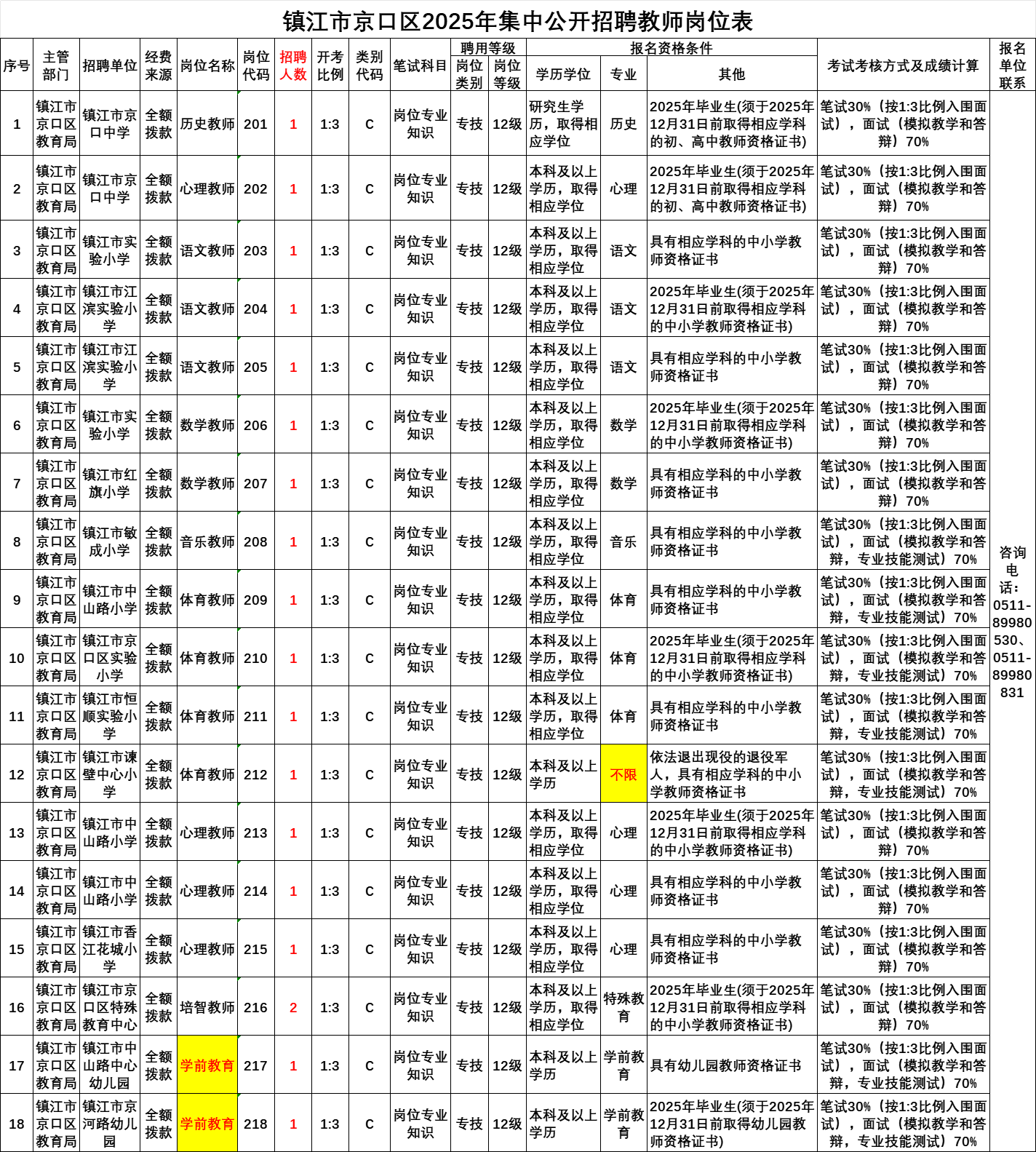 附件1:镇江市京口区2025年集中公开招聘教师岗位表.xls